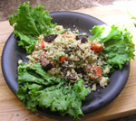 Combine all salad ingredients in a big bowl, mix them with quinoa, and serve over a leaf of lettuce